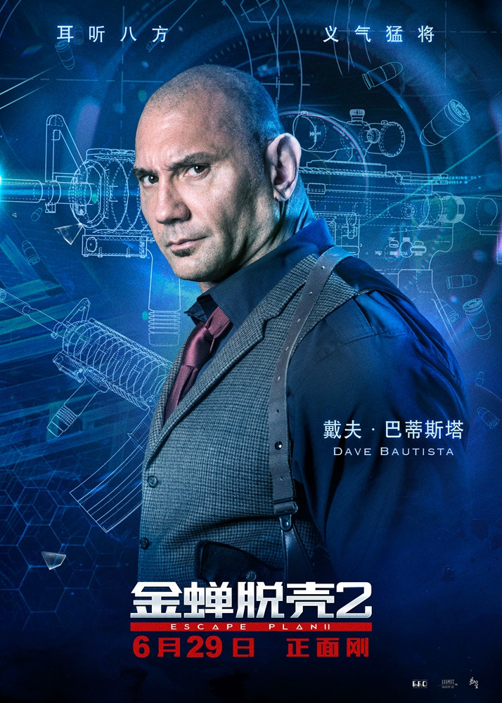 好莱坞越狱动作巨制《金蝉脱壳2》由史蒂文·C·米勒执导,西尔维斯特·史泰龙(《敢死队》系列)、黄晓明(《无问西东》)、戴夫·巴蒂斯塔(《银河护卫队》)、杰米·金(《罪恶之城2》)、柯蒂斯·杰克逊(《金蝉脱壳》)等联袂主演,奚梦瑶(《喜欢你》)友情客串,将于2018年6月29日在全国正式上映。